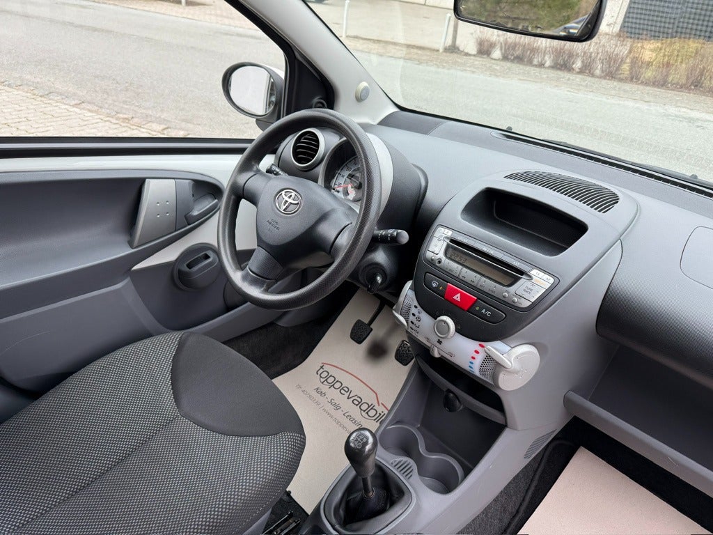 Aygo er kendt for sin lave ejerafgift, høje driftssikkerhed og imponerende brændstoføkonomi. Den kompakte størrelse gør den ekstremt nem at parkere og manøvrere i byen, samtidig med at 5 døre giver god praktisk adgang til bagsæderne.